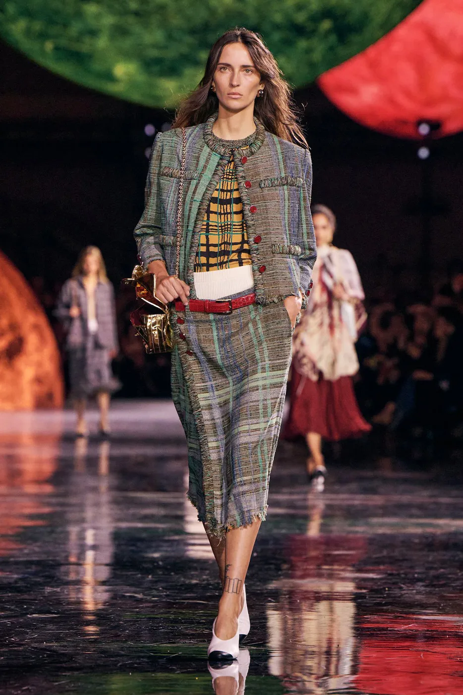 Many designers homed in on the trend of looking toward the environment. Christian Dior’s outdoor show and Valentino and Miu Miu’s grass runways were just a couple of designers who made nods to the environment.